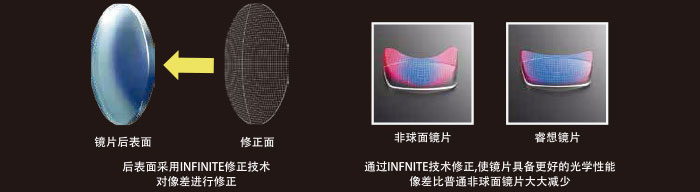 通过INFINITE技术修正,像差比普通非球面镜片大大减少,结合VIEWFIT全新技术,使配戴者拥有更清晰、更广泛的视野,同时多种弯度供选择,展现良好美学效果。