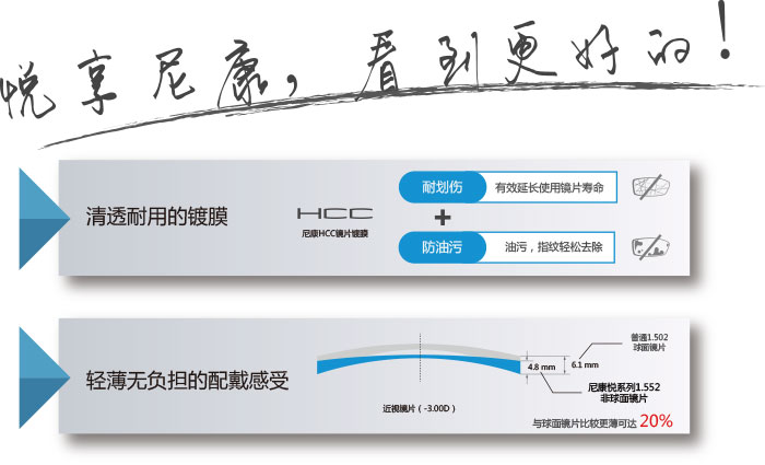 Nikon Joy单焦点镜片,拥有清透耐用的镀膜及轻薄无负担的配戴效果。针对初级镜片配戴者的入门级需求。